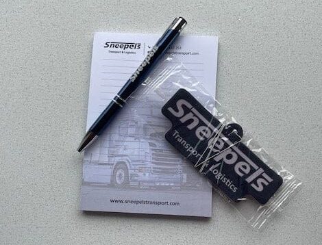 Een notitieblok en een pen van Sneepels.